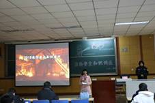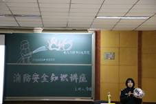 杜苇老师表示学院对全体学生的个人安全高度重视、阐明了本次消防安全知识讲座的重要意义及对主讲人李祺做了介绍。随后李祺教官为大家讲解了基本消防安全制度、我们身边容易引发火灾的隐患及我们应该如何正确应对的相关知识;利用视频的形式,让同学们更直观认识到正确逃生的重要性。