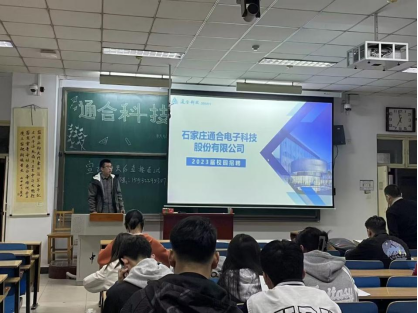 为促进2022届毕业生高质量就业,3月8日晚上,石家庄通合电子科技股份有限公司在我校11205教室举行了校园招聘宣讲会。学院电气专业、自动化专业的60余名毕业生到场参加了此次宣讲会。