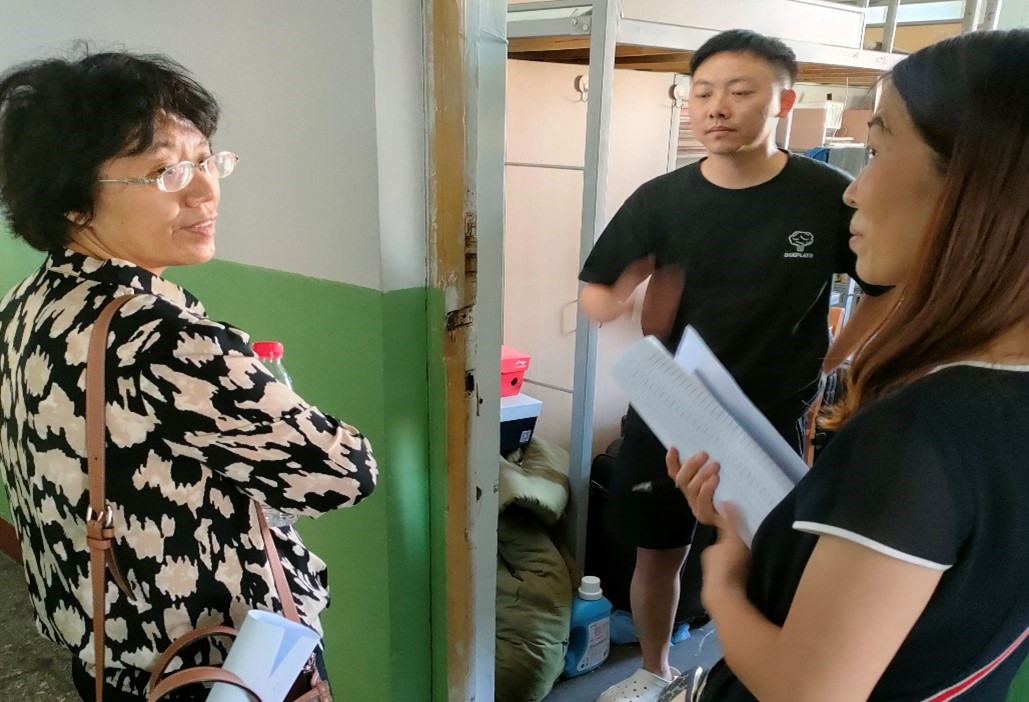 走访过程中,学院领导们与毕业生亲切交谈,细心询问同学们的离校准备情况,了解同学们的毕业去向,叮嘱同学们注意归途安全。