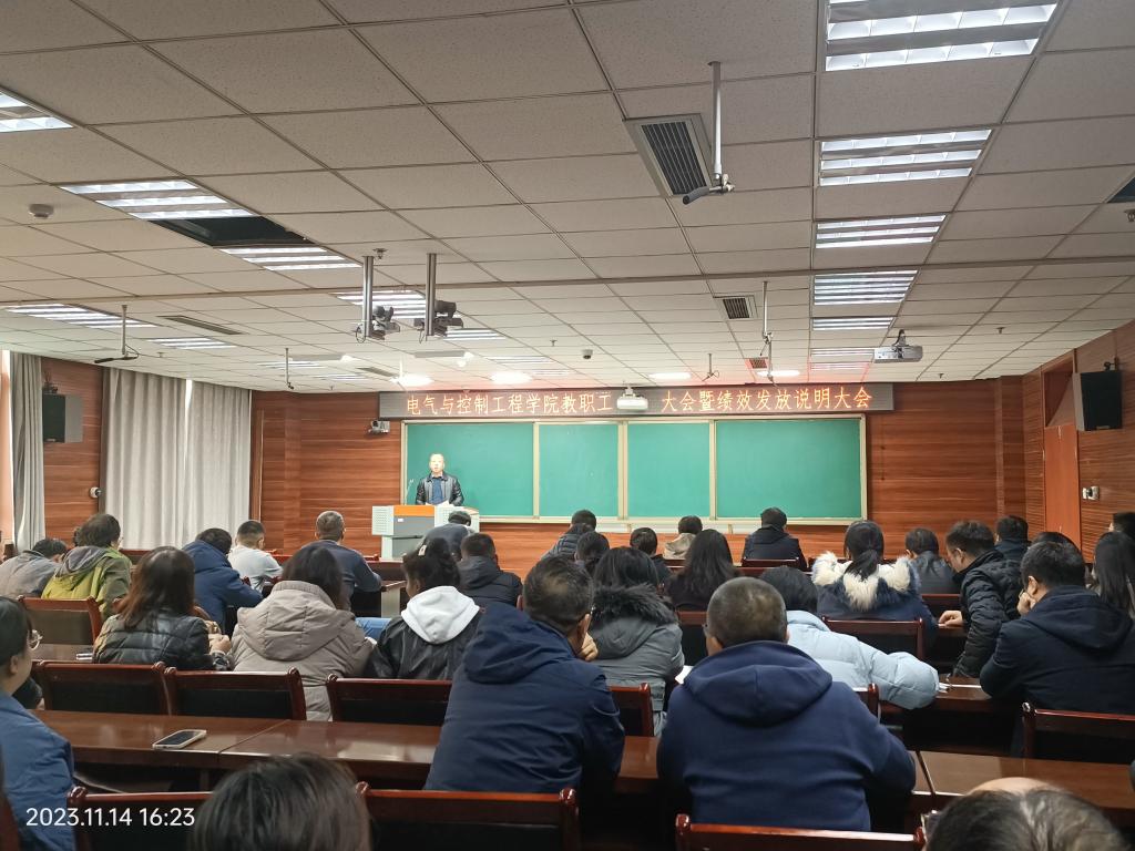 11月14日下午四点十分,在线赌博 在815会议室召开全院教职工大会,对绩效发放进行解释和分析,广泛征求教师对绩效的建议和意见。会议由副院长(主持工作)邵星灵主持。