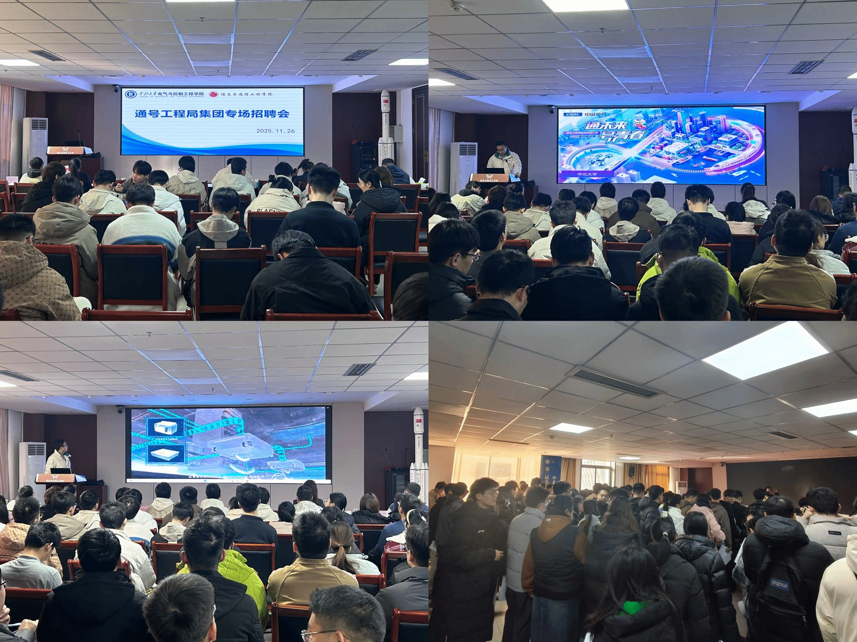 联合信息与通信工程学院,在主楼七楼西侧会议厅成功举办通号工程局集团专场招聘会,活动以“精准引才、双向赋能”为核心,涵盖宣讲与面试两大环节。