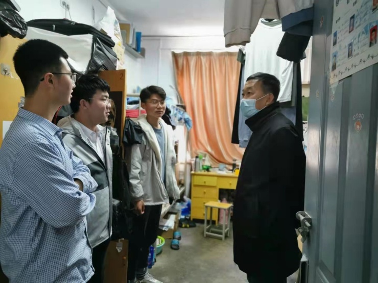党委书记陈晔、副书记兼副院长杜苇、教学副院长李晓及科研副院长任一峰携辅导员深入学生宿舍,对返校学生的疫情防控情况进行检查和指导,并点对点了解其思想、心理、学习和生活状态,加强心理疏导,维护积极向上,和谐有序的校园氛围。