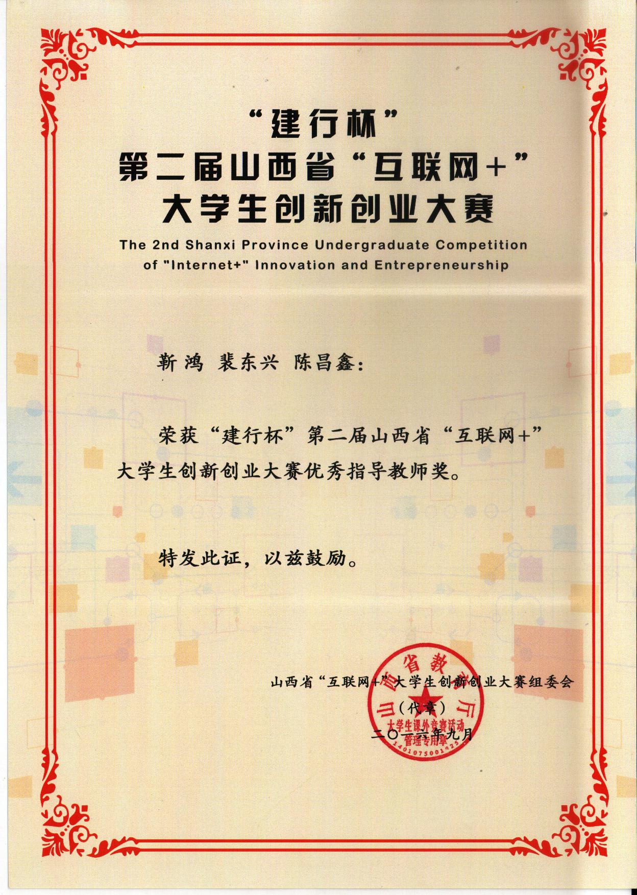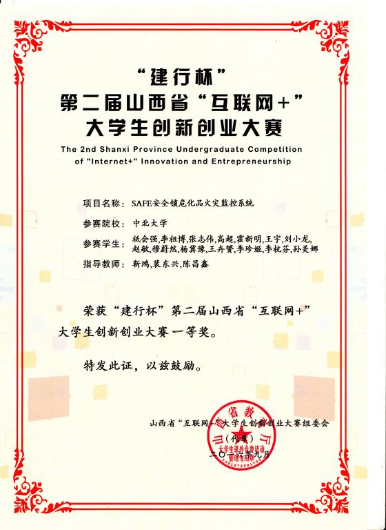由靳鸿、裴东兴、陈昌鑫指导的“SAFE安全锁危化品火灾监控系统”荣获“建行杯”第二届山西省“互联网 ”大学生创新创业大赛一等奖;2016年10月28日第二届中国“互联网+”大学生创新创业大赛中,荣获铜奖。
